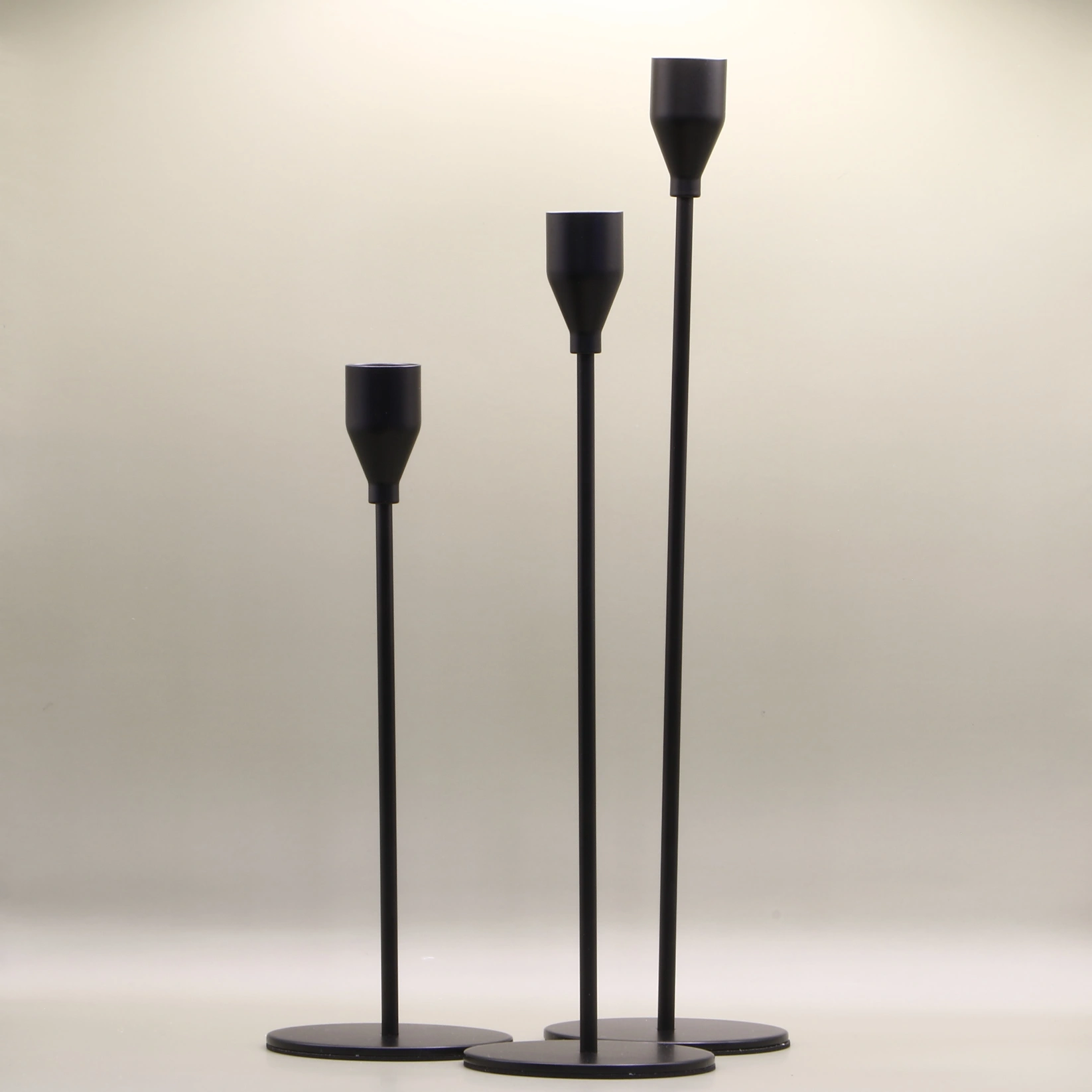 3 Piece black metal candle stick holder S/M/L – 23cm/28cm/33cm