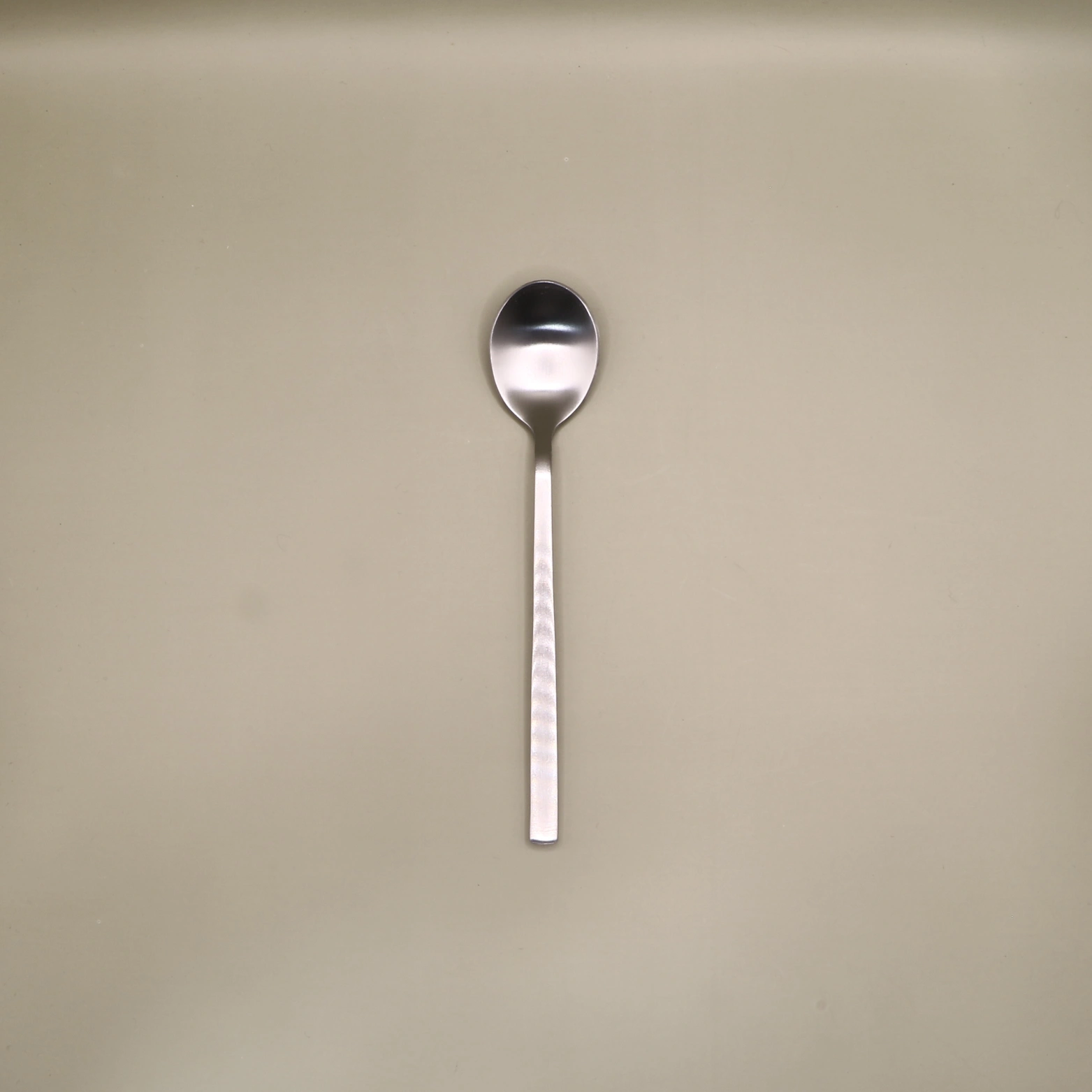 Modern matt silver stainless steel dessert spoon